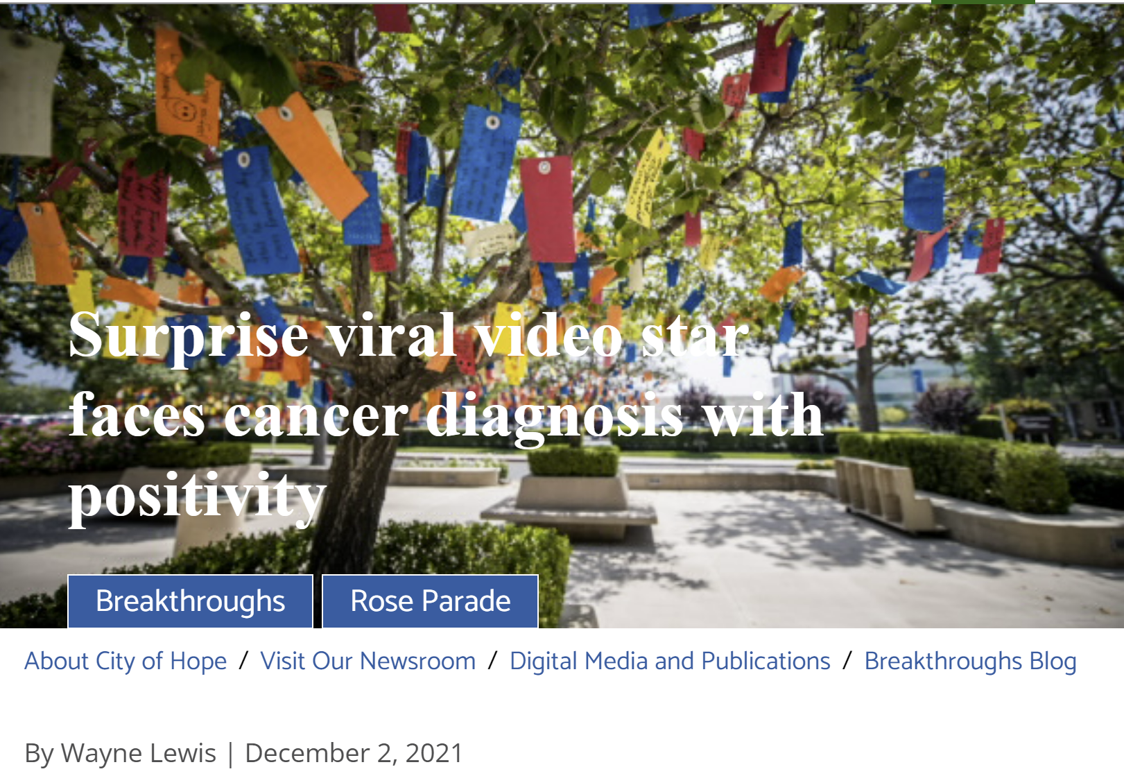Surprise viral video star faces cancer diagnosis with positivity Click the image below to open this Q&A in a new window. first-person/q&aWayne LewisDecember 2, 2021front page Facebook0 Twitter LinkedIn0 Reddit Tumblr Pinterest0 0 Likes