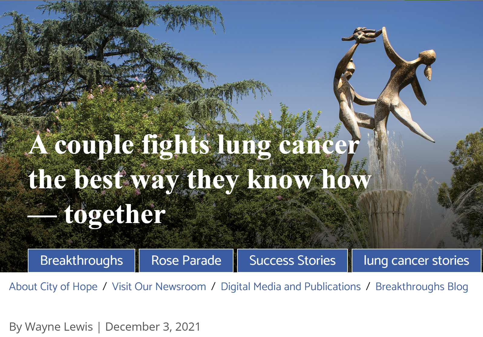 A couple fights lung cancer the best way they know how — together Click the image below to open this Q&A in a new window. first-person/q&aWayne LewisDecember 3, 2021front page Facebook0 Twitter LinkedIn0 Reddit Tumblr Pinterest0 0 Likes